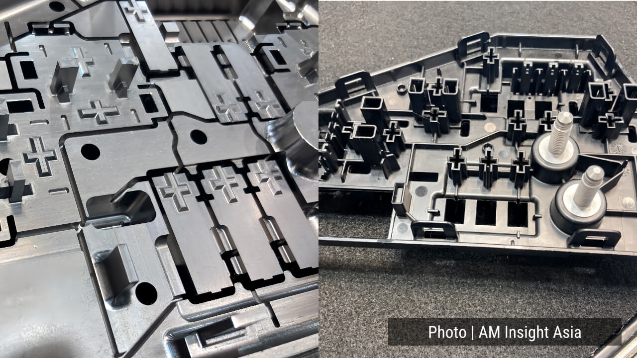 The precision of molds created through hybrid technology combining AM and cutting is impressive no matter how many times it is seen. By combining cutting with laser sintering to achieve high precision unattainable by laser sintering alone, the quality of the exhibited mold samples clearly demonstrates practicality in injection molding. They are significant as a Japanese machine tool manufacturer who has elevated AM technology to a practical level.